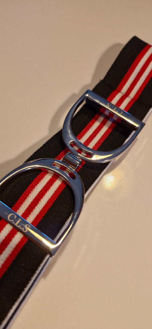 CLS Silver Stirrup Elastic Belt 1.5" Black with Triple Red Stripe