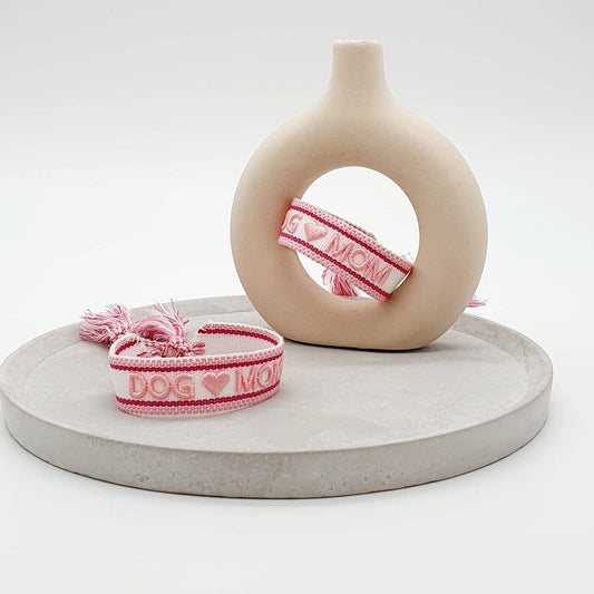 Dog Mom Statement Woven, Embroidered Bracelet.